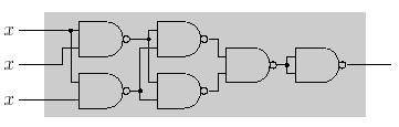In contemporary VLSI chip industry, the software tools used by electrical engineers perform many optimizations. Your task is to implement one specific optimization of some chip design. Your tool is given an acyclic net of NAND gates (NAND gate computes the negated conjunction of its inputs, i.e. the output value of the gate is 0 if and only if its both input values are 1). The net is a part of already synthesized component and cannot be changed. All the inputs of the net are connected to one signal x. The objective is to disconnect x from some inputs and to assign constant signals 0 and/or 1 to those inputs in such a way that the function implemented by the design remains unchanged.