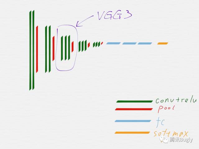 从示意图上可以看到,绿色代表的卷积层和红色代表的池化层,可以很明显的划分出五组,上图用紫色线条框出来的就是其中的第三组。