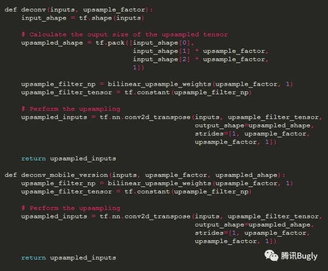 问题就是由 deconv 函数中的 tf.shape 和 tf.pack 这两个操作引起的,在 PC 版代码中,为了简洁,是基于这两个操作,自动计算出 upsampled_shape,修改过后,则是要求调用者用 hard coding 的方式设置对应的 upsampled_shape。