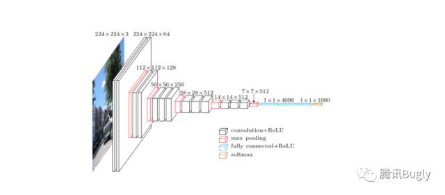 在上面这个示意图里,用不同的颜色区分了 VGG16 的不同组成部分。