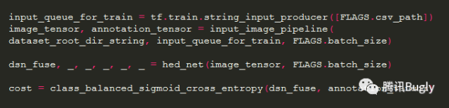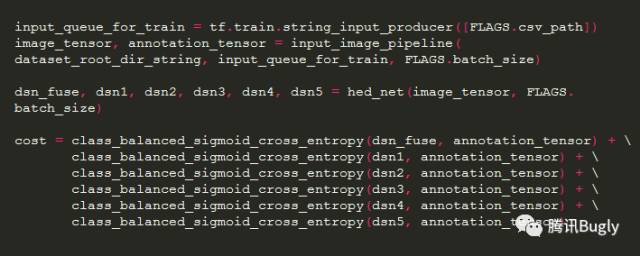 论文给出的 HED 网络是一个通用的边缘检测网络,按照论文的描述,每一个尺度上得到的 image,都需要参与 cost 的计算,这部分的代码如下: