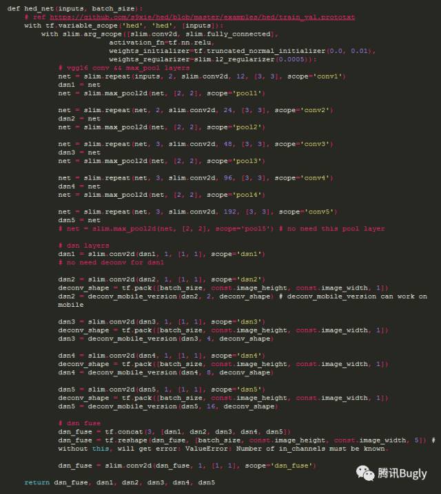 基于 TensorFlow 编写的 HED 网络结构代码如下: