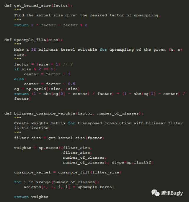 在尝试 FCN 网络的时候,就被这个问题卡住过很长一段时间,按照 FCN 的要求,在使用转置卷积(transposed convolution)/反卷积(deconv)的时候,要把卷积核的值初始化成双线性放大矩阵(bilinear upsampling kernel),而不是常用的正态分布随机初始化,同时还要使用很小的学习率,这样才更容易让模型收敛。