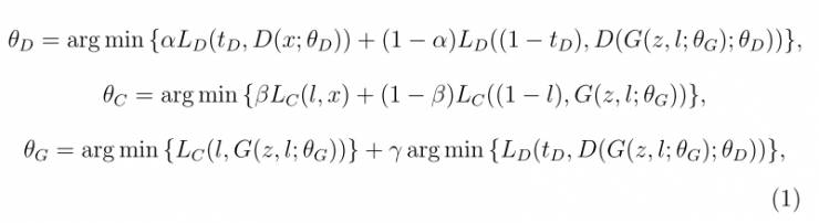 l 是样本x的二进制表示,并且是发生器的输入数据,同时还作为鉴别器和分类器的参数。