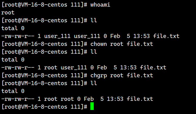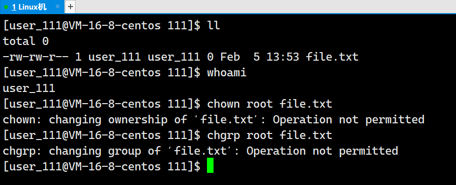 对于普通用户,文件的拥有者和所属组都无权修改。