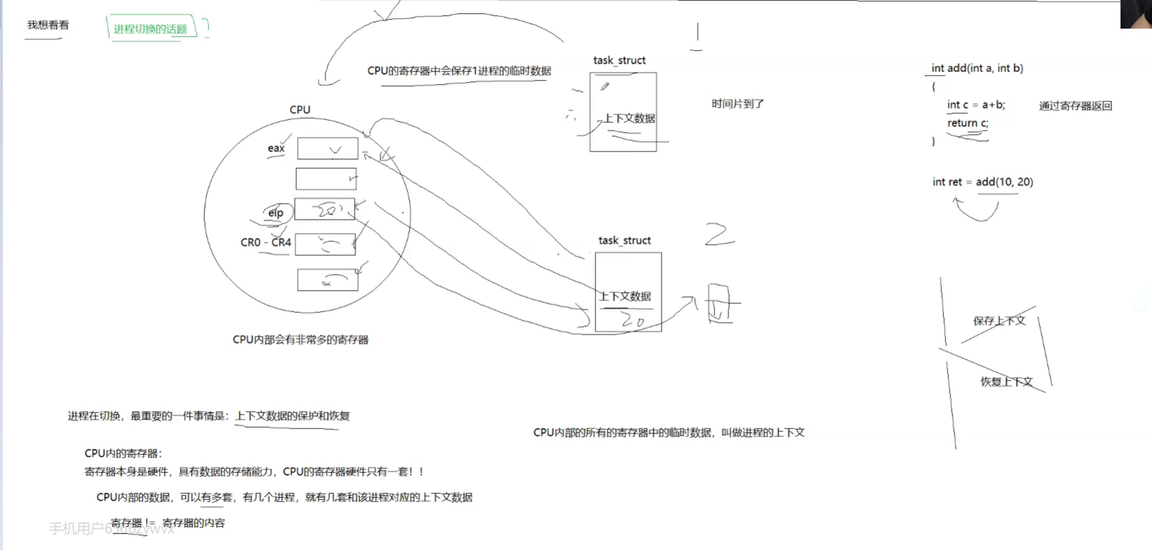 进程在cpu中产生的临时数据叫做进程的上下文数据。