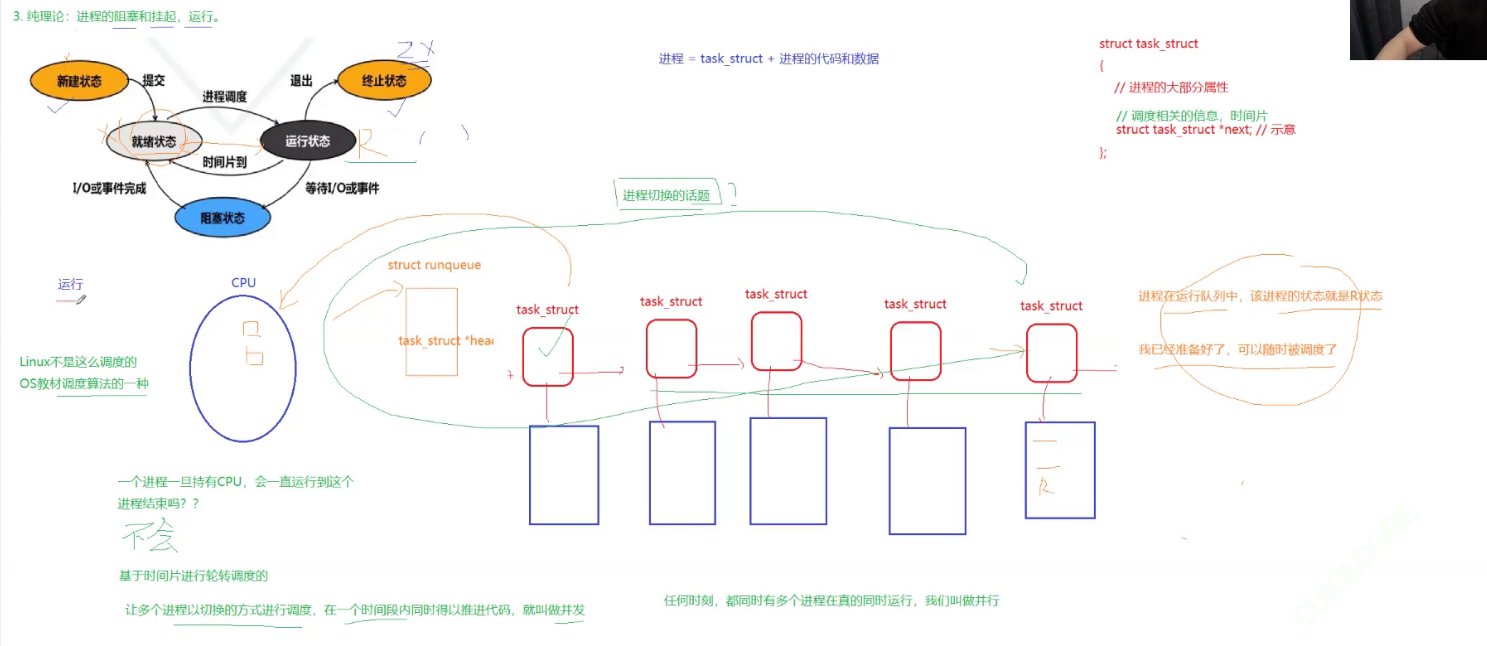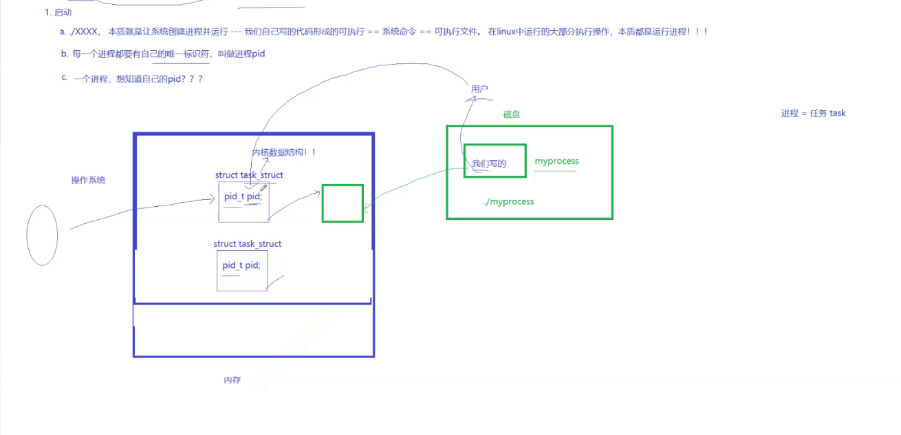 Hello everybody!最近学习任务比较重,就没有时间去专门写博客。这篇文章是我在学习Linux操作系统的第一节进程时整理的笔记,上面的图片是老师的板书,有几张图片有些杂乱,可能不知道从何看起。不过每张图片后都有十分详细的文字描述,读懂那些文字也就读懂了图片在说什么。