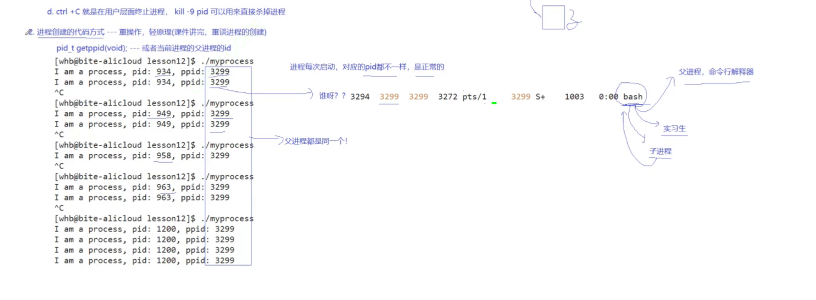 而pid是操作系统内部的内核数据结构,用户不可以直接访问。只能通过系统调用:getpid。