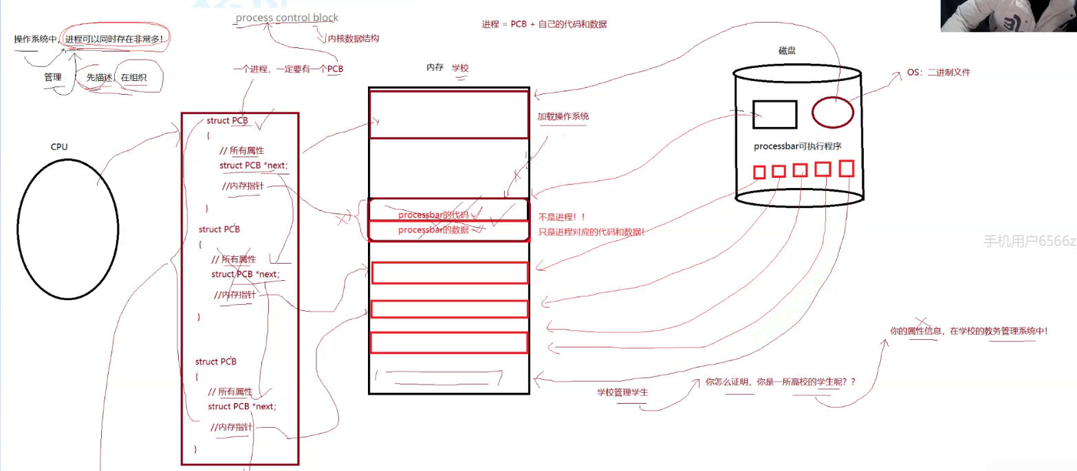 PCB内有程序的基本属性,操作系统通过管理PCB来管理程序。