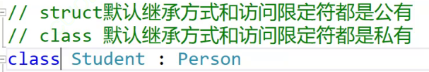 2.struct的默认访问限定符是public,在没写继承方式时,继承方式同样默认public继承。