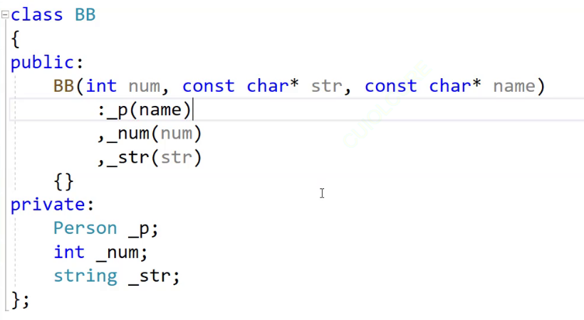 如果不用继承,就把Person当成BB的成员,在Person没有默认构造时,同样需要在BB的构造函数中显式的调用Person的构造函数,区别就是继承类似于匿名对象的初始化,这个是有名的。