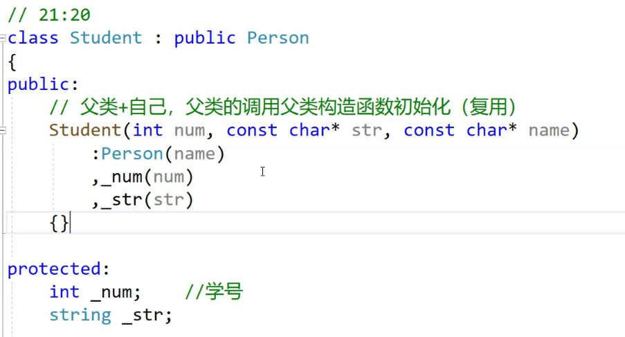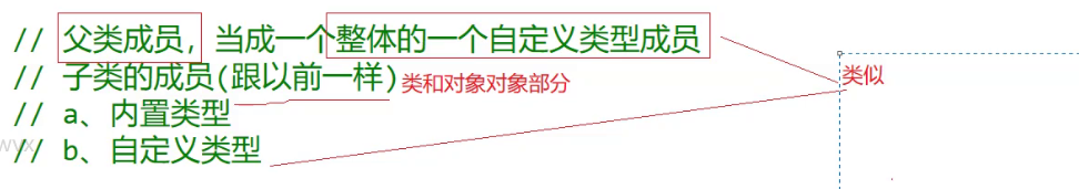 因此,继承,你就可以想象成有一个基类对象变成了派生类的成员,所以它是一个整体,它的初始化只能去调它的构造函数,不可以在派生类的构造函数中逐一初始化它的成员。