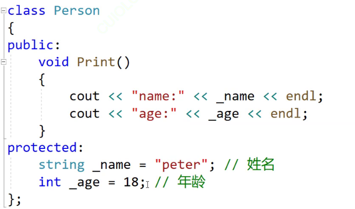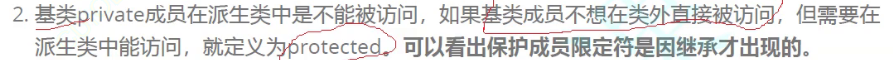 而基类中的protected成员,在基类和派生类外面不能访问,但在派生类里面可以被访问。
