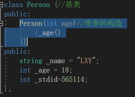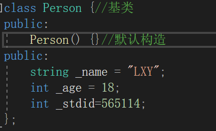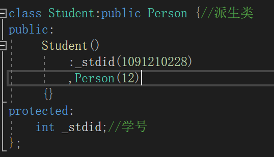 当然如果基类中有默认构造函数,就不需要在派生类的构造函数中显式的调用基类的构造函数了: