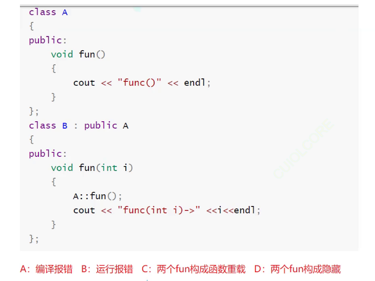 对于C:两个函数构成重载的前提是:1.在同一个域中。2.函数名相同。3.参数不同。所以C不对。