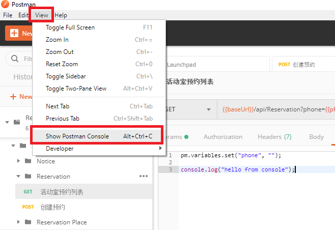 查看 postman console