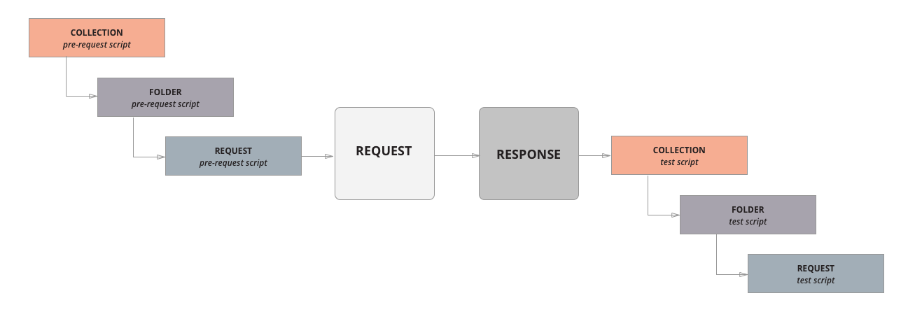 Collection/Folder/Request 都可以定义自己的 Pre-Request Scripts 和 Tests,这些 Scripts 执行顺序如下:
