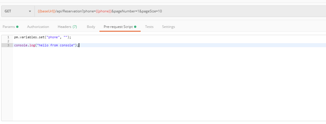 这里的 pm.variables.set("phone","") 是设置 phone 这一参数为空字符串,由下图可以看出,phone 这一变量在发送请求的时候会被替换成空字符串