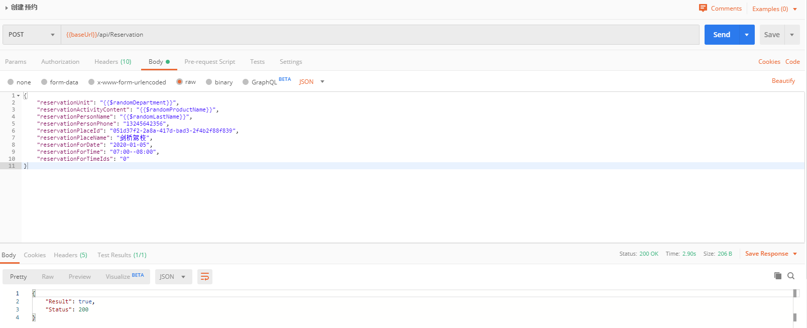 使用变量,如 username => {{username}},使用两层大括号来表示变量引用,比如上面的测试中的 phone