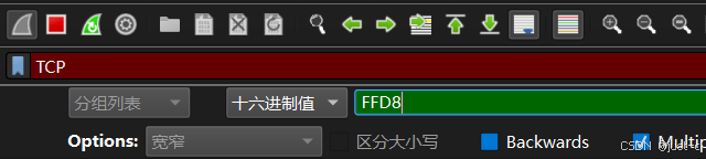 4.在过滤器输入TCP,再点击Ctrl F,输入FFD8,查找