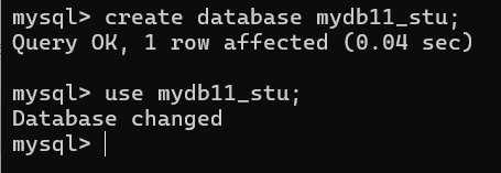 创建数据库mydb11_stu并使用数据库
