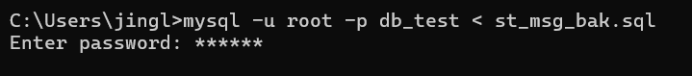 course表,备份到本地主机保存为st_msg_bak.sql文件,然后将数据表恢复到自建的db test数据库中: