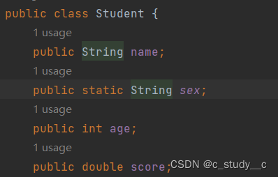 这里就是static 修饰的就是sex ,在java中,被static修饰的成员就是静态成员变量,其不属于某个具体的对象