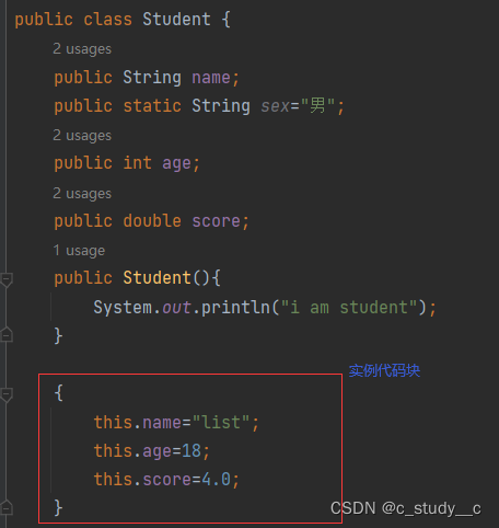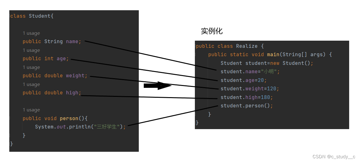 (3)实例化出的对象,占用实际的物理空间,存储类成员变量
