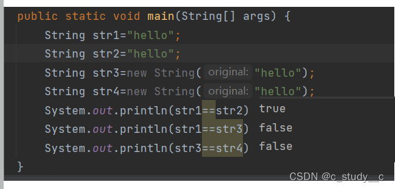 str1与str2相同这里内部就涉及到了常量池,我们这里其实不是真的对hello进行了判断是否相同,而是地址,更真实一点来说是哈希值相同