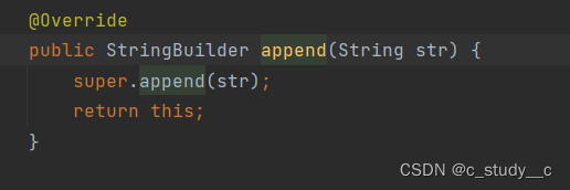 这是我们刚刚使用append时调用的方法,返回的是this当前stringBuilder本身,不像String需要再创建新对象来存放