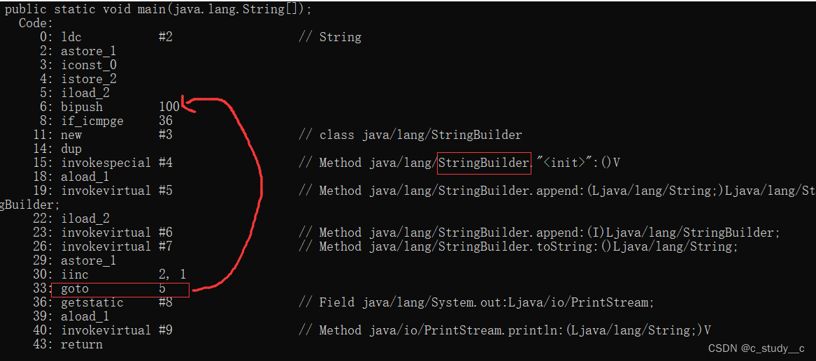 在这个地方是for循环的,汇编时涉及到了什么,这里面我们能看到一个StringBuilder这里我们不用看其他的,知道这是一个循环,每次循环都会new一个对象StringBUilder,所以说for循环速度很慢,这里就可以来使用我们的StringBuilder来解决运行速度问题,在这里的遍历
