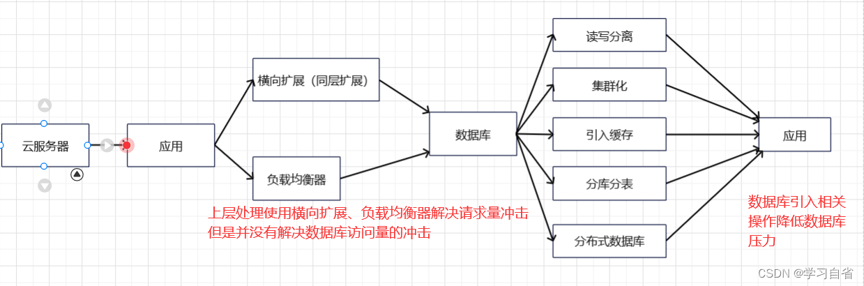 缺点:硬件成本变高、性能有瓶颈,无法对应海量并发(当前数据库仍然是要接收所有请求处理处理)