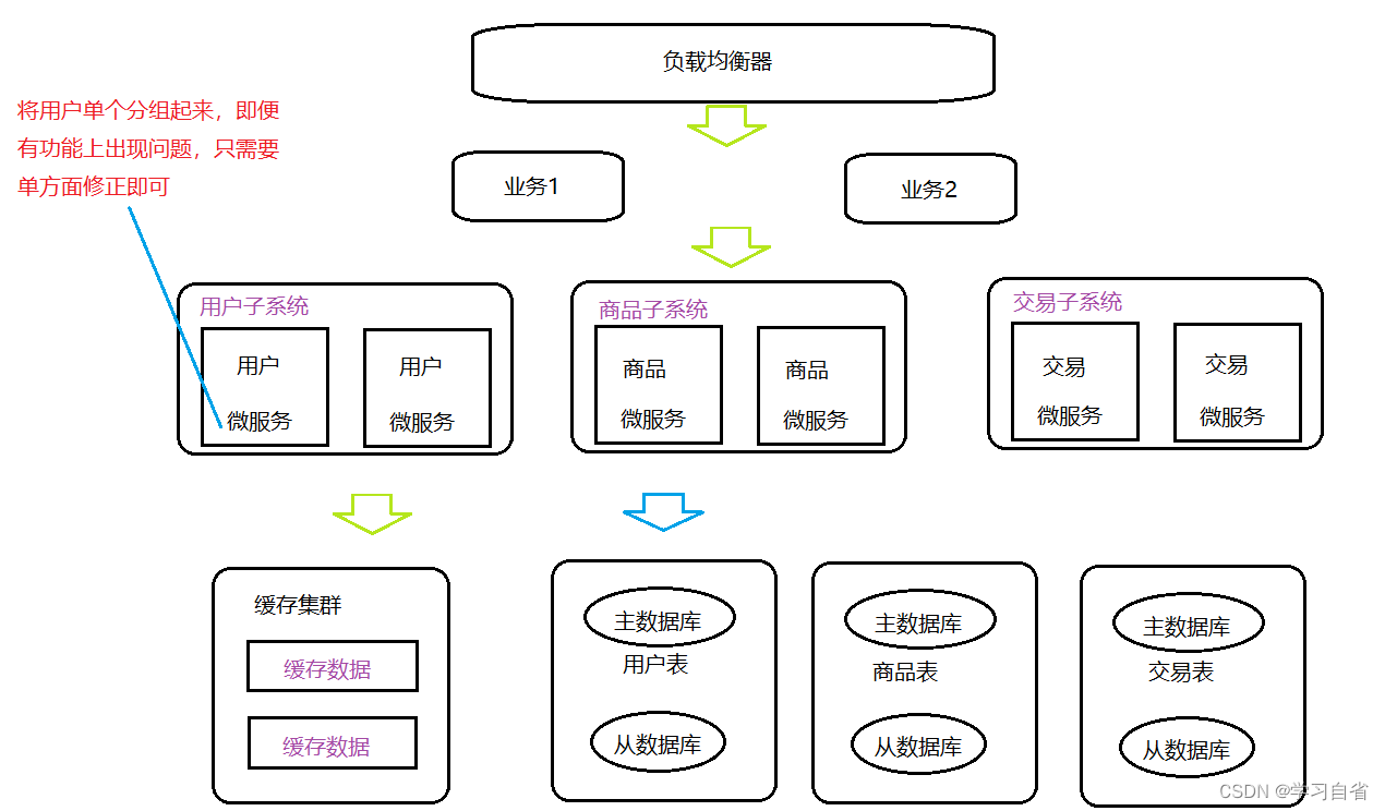 (2)数据库和缓存结合能够支持海量的请求,但是应用代码整体耦合,修改一行代码就需要连带修改很多,整体重新发布