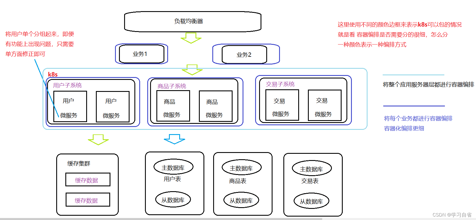 下面就有了微服务,微服务并没有解决运维任务量大的问题,微服务只是将代码解耦,能让开发更加便捷,各司其职互不影响,运维的麻烦还是经过docker容器化打包成镜像交给k8s进行编排降低运维的任务量