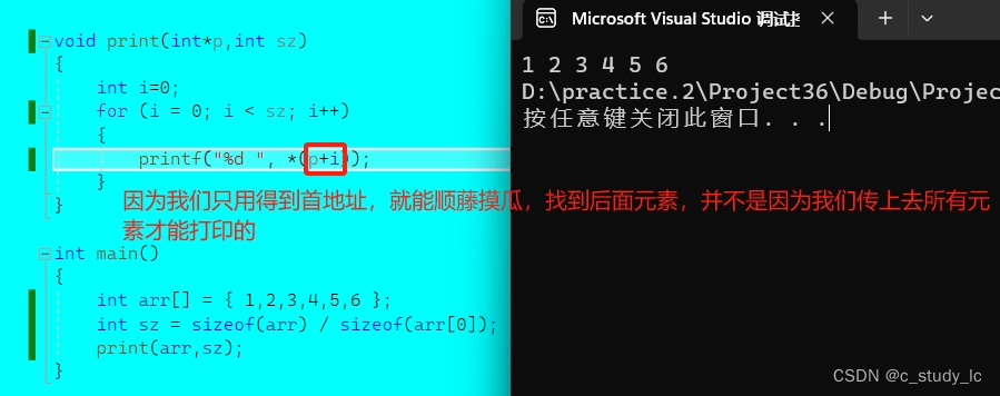 那不禁有人要问,既然传的是首元素地址,为什么能打印整个数组呢?请看下面代码