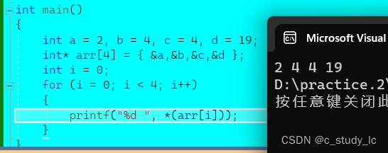 由此类推,arr[i]=*(arr+i)=*(i+arr)=i[arr](交换律)。我们不论写成什么形式都是正确的。