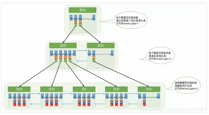 mysql的数据存储依靠 页 来存储。页分为 目录记录页和用户数据记录页。