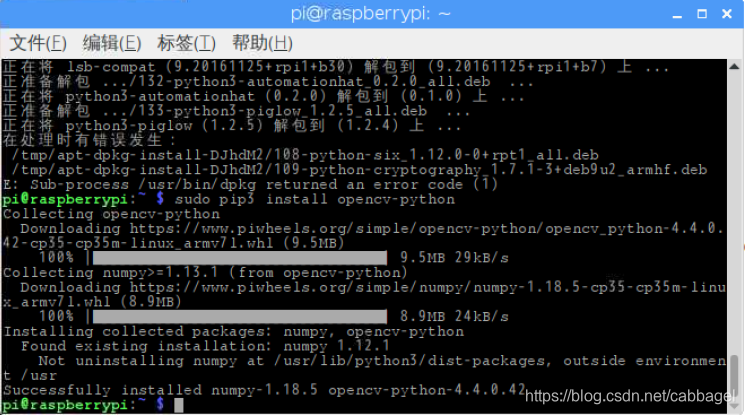 树莓派3b,若干年前买的,软件具体配置不记得。python缺省版本为3.53。直接用pip命令安装不成功,显示一堆的红字。