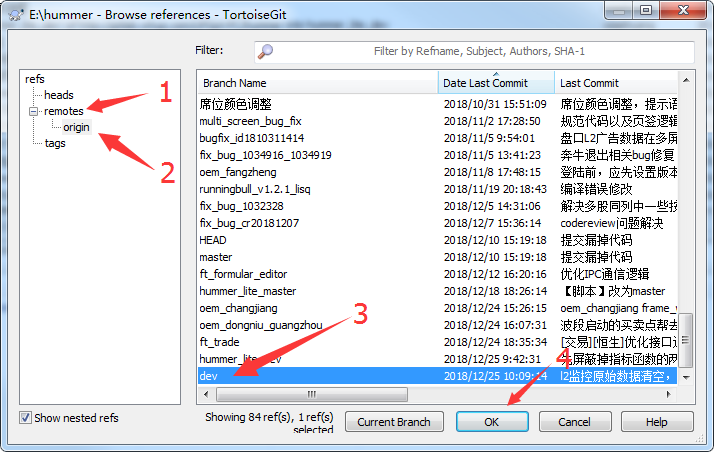 - 当我们使用git管理一个程序的源码时,总是会新建很多分支。不同的分支可以直接使用merge来合并代码。但我们有时候会有这种需求,比如说我们有n个分支分别开发不同版本的程序,其基础功能是一样的,但是不同分支上有不同的需求开发,这时我们的基础功能上有一个bug的修复想同步到其他分支上就不能使用merge了,因为merge会合并所有改动代码。这种情况下,我们需要使用的是git的cherry pick功能。在命令行中使用这个功能比较简单,网上有很多,但是我们使用tortoisegit工具使用这个功能没看到介绍这种操作的,这里我分享出来也做个记录。