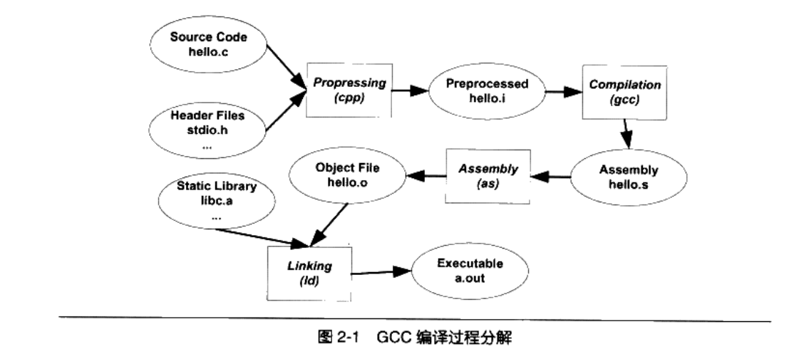 - 链接:链接的主要内容就是把各个模块之间相互引用的部分都处理好,使得各个模块之间能够正确地衔接。链接过程主要包括了地址和空间分配、符号决议和重定位等步骤。最终生成可执行文件。