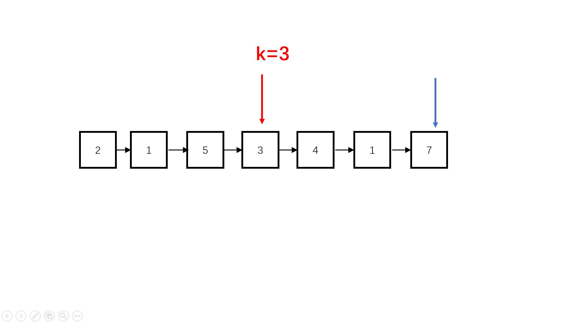 例如输入{1,2,3,4,5},2时,对应的链表结构如下图所示: