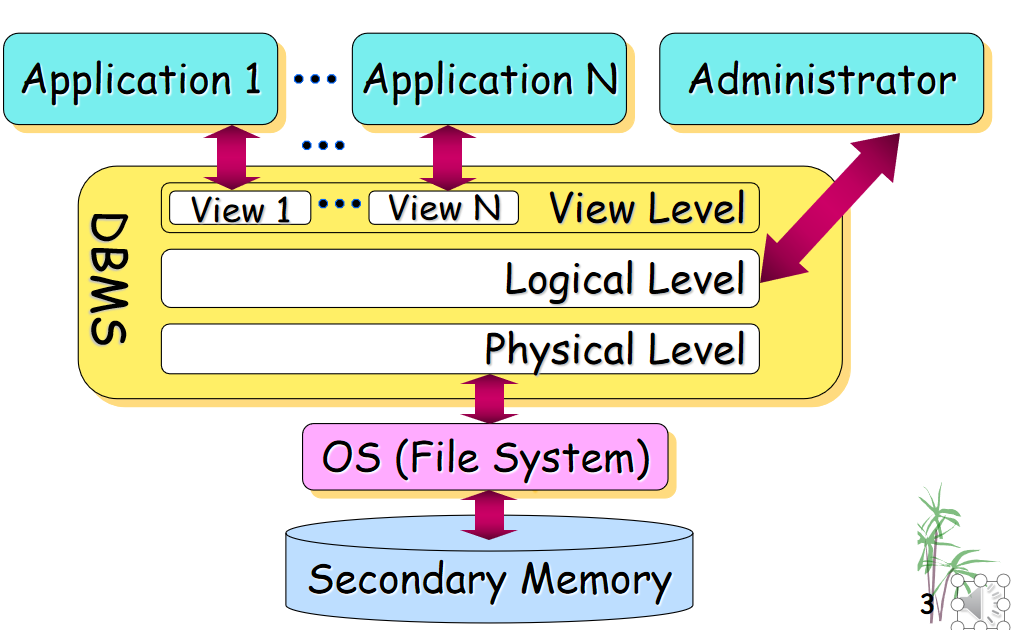 DBS 包括 数据库本身的软件(数据库管理系统DBMS、操作系统OS、应用系统)、硬件、数据库管理员