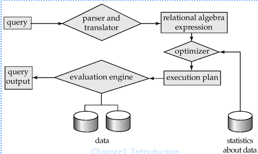 1.将查询语句解析并翻译parsing and translation成查询处理器可以理解的关系代数表达式