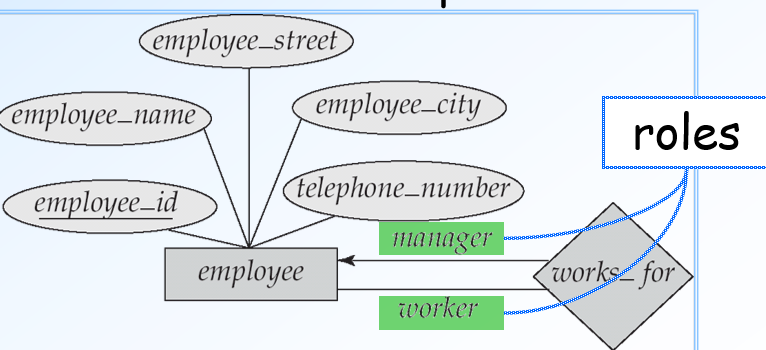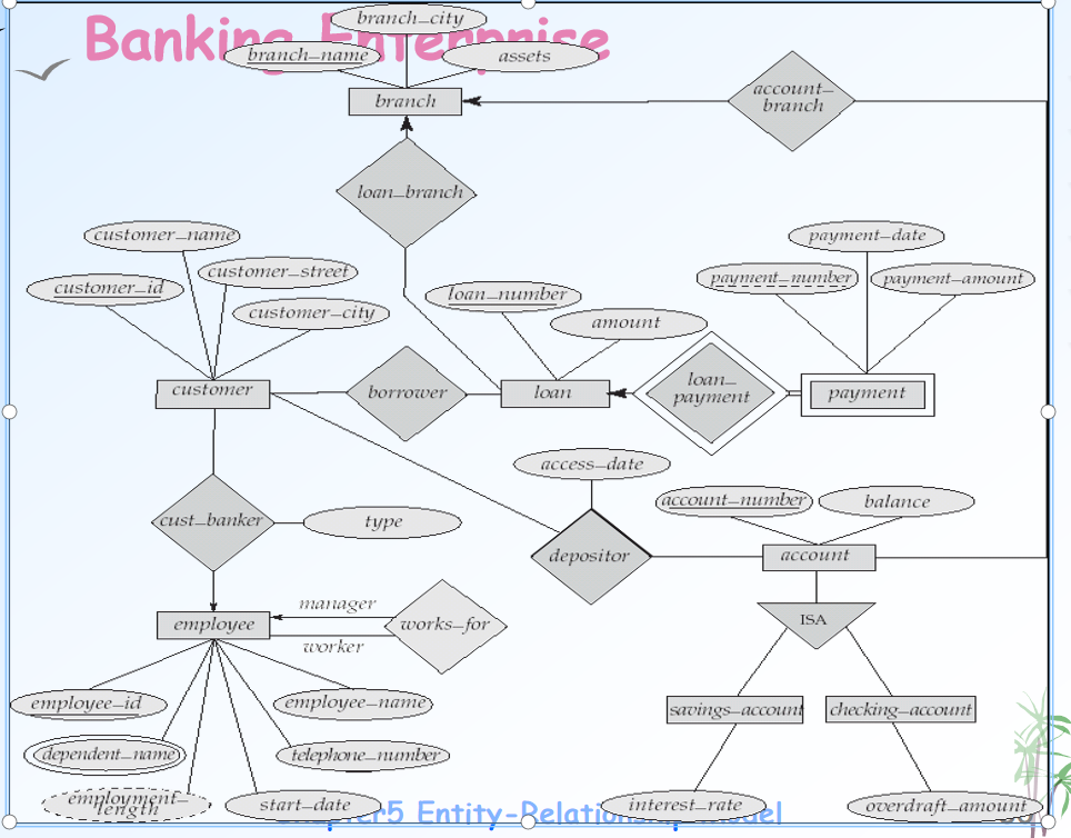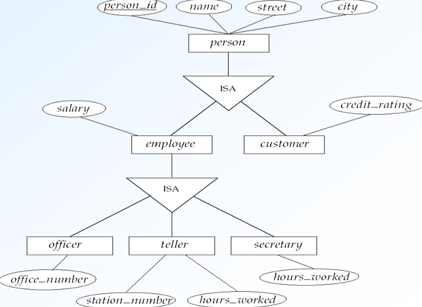 特殊化specialization:属性继承,通过ISA(三角形)特殊化为其他实体集。