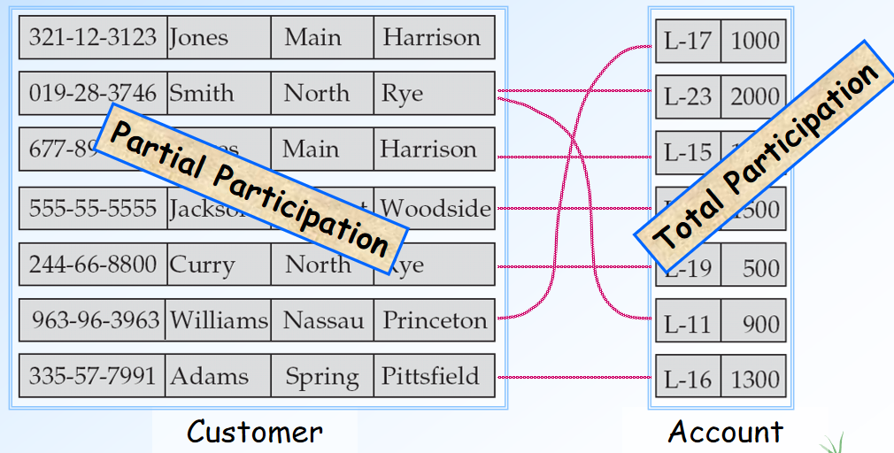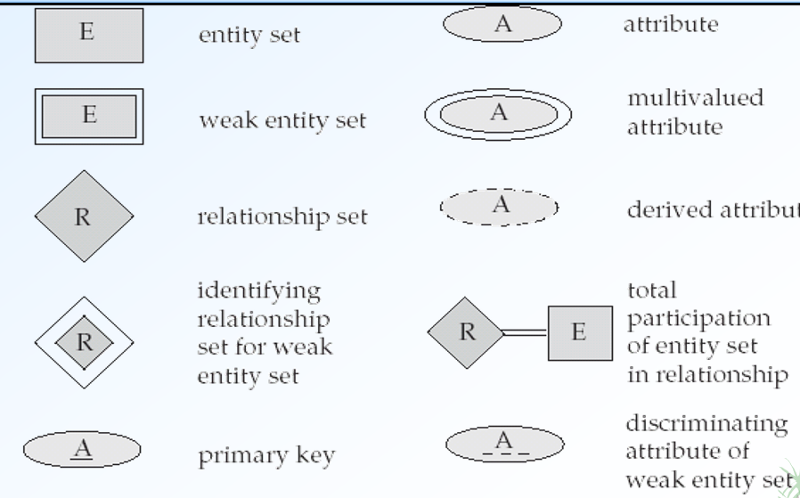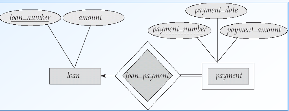 弱实体集必须通过多对一并且全部参与到强实体集,中间的关系集就是标识实体集。