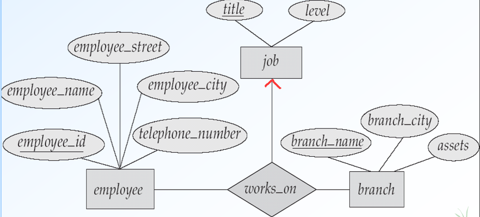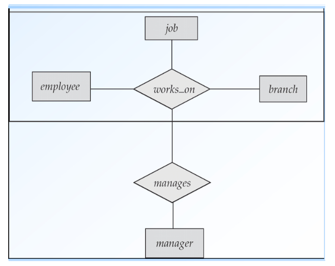 度degree:联系集里有多少实体集。ternary relationship三元联系。二元binary。