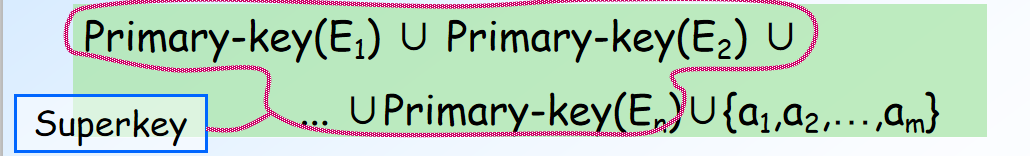 联系集包括实体集的主码和属性。所有主码作为联系集的主码。
