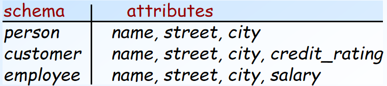 每个实体都形成一个模式,包含自己的属性和继承的属性