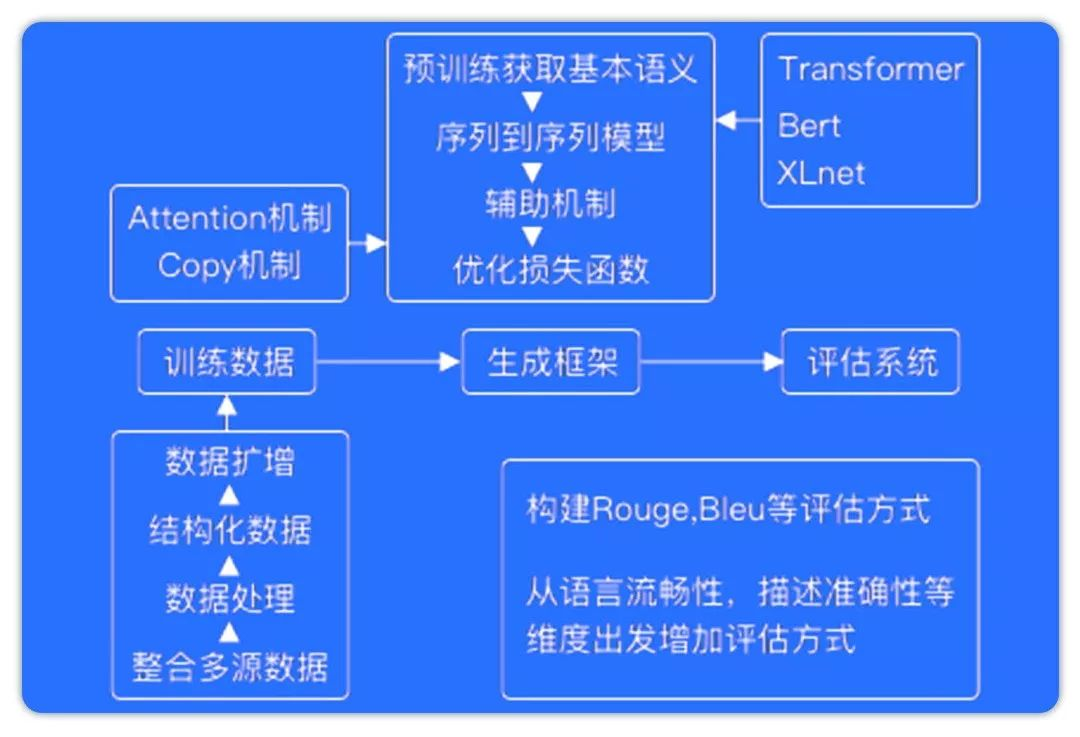 预训练模型,seq2seq,attention机制, copy机制,损失函数的优化,文本质量的评估(rouge,bleu等)