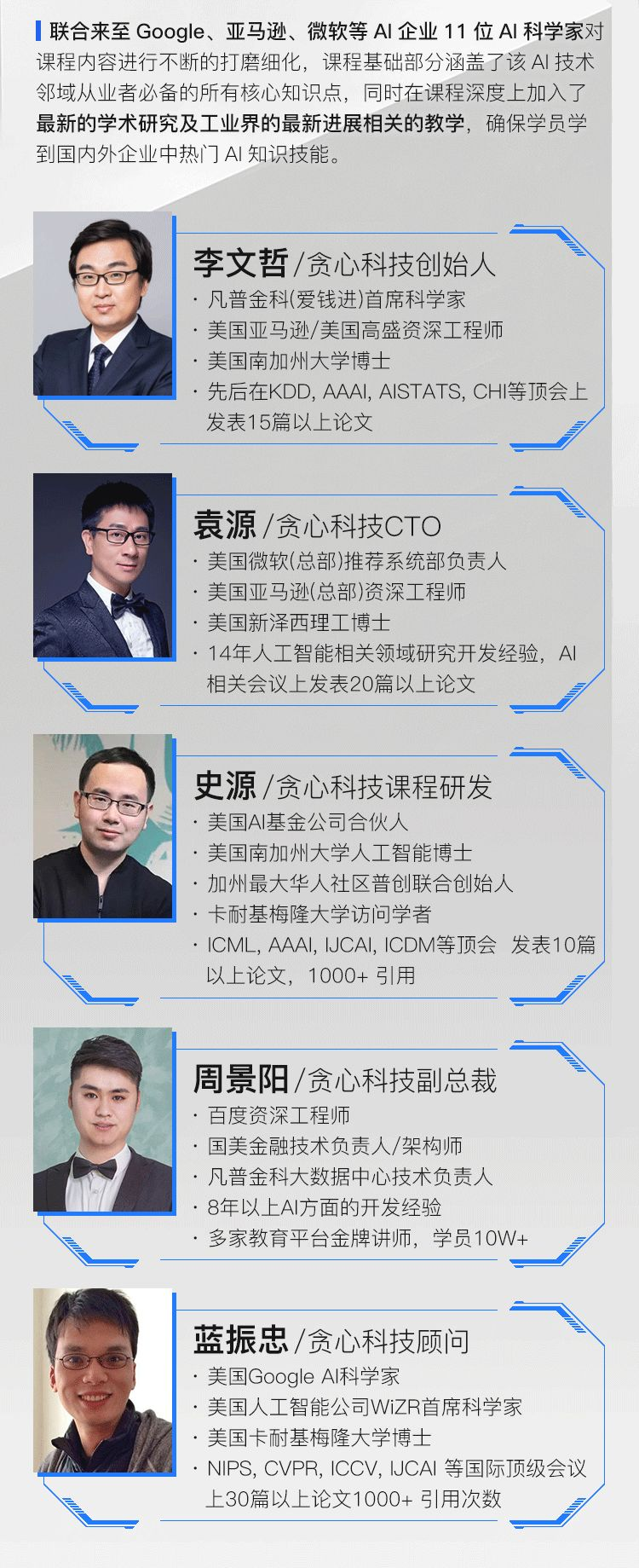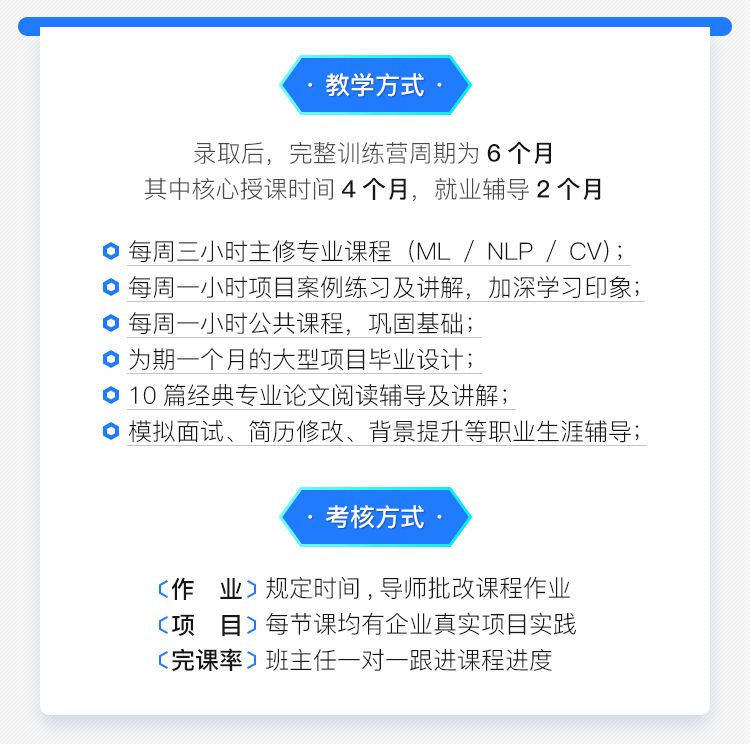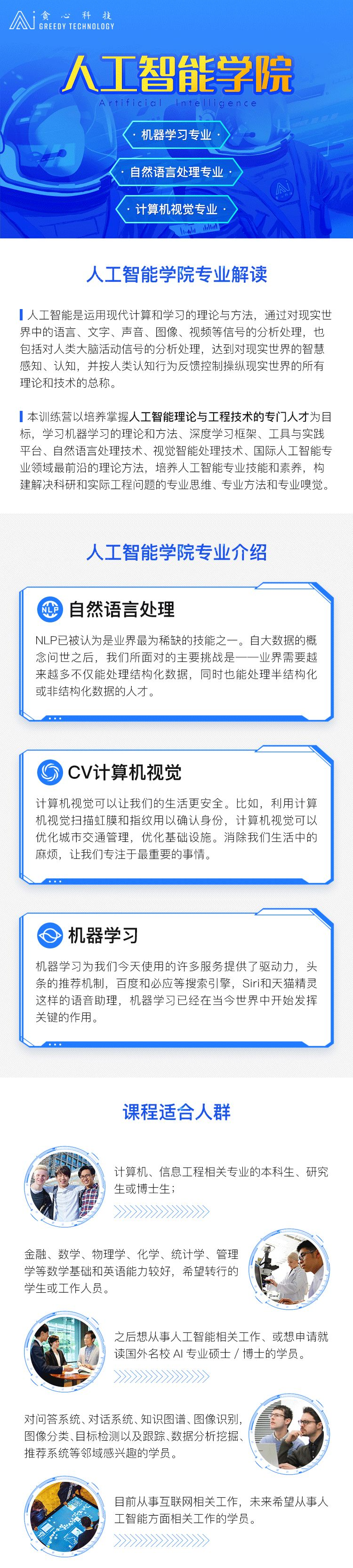 随着各大AI企业布局人工智能,如今日头条、淘宝的推荐系统,谷歌搜索引擎,Siri和天猫精灵这样的语音助理,百度无人驾驶汽车,美图秀秀AI美颜等均应用到了自然语言处理、计算机视觉、机器学习等AI技术。课程将围绕这3个方向的展开,由浅入深配备以企业级项目实战,4个月时间拿下AI岗位Offer。